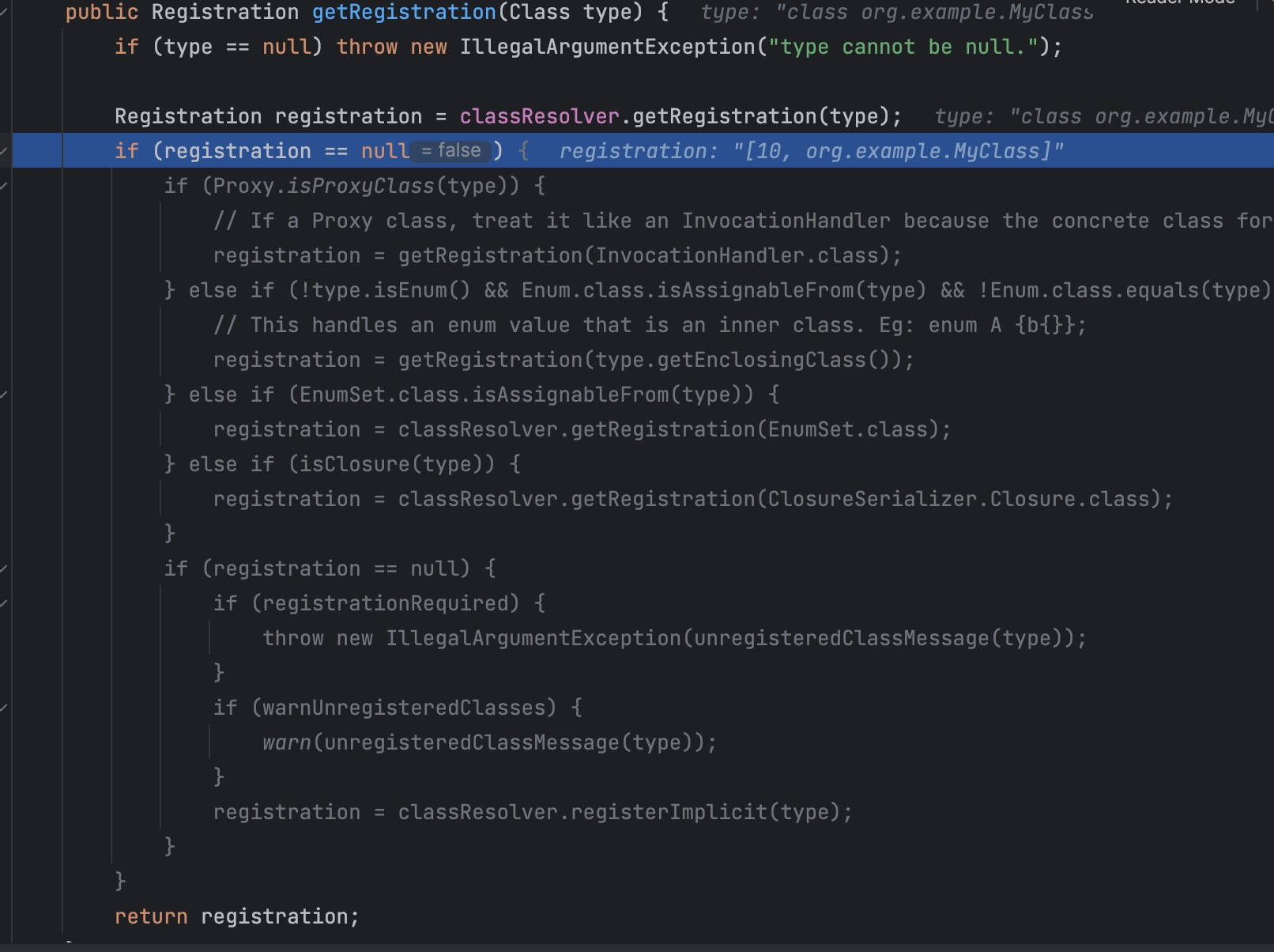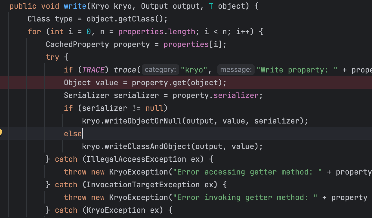 1 2 3 4 5 kryo.writeClassAndObject(output, object); Object object = kryo.readClassAndObject(input); if (object instanceof SomeClass) { // ... }