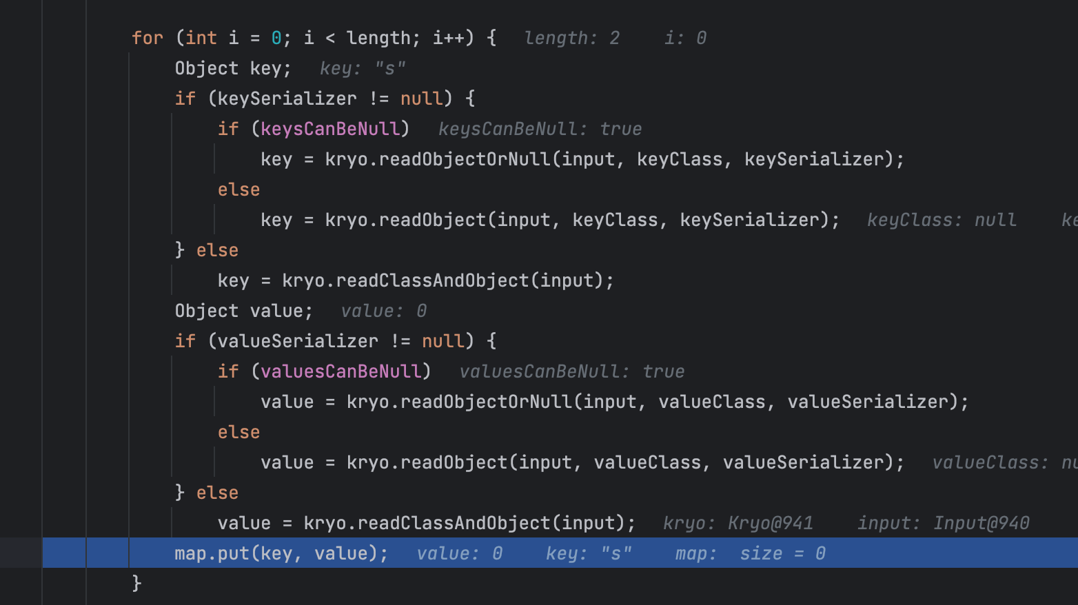 首先看到他先反序列化了key,接着反序列化了value,最后进行了put操作